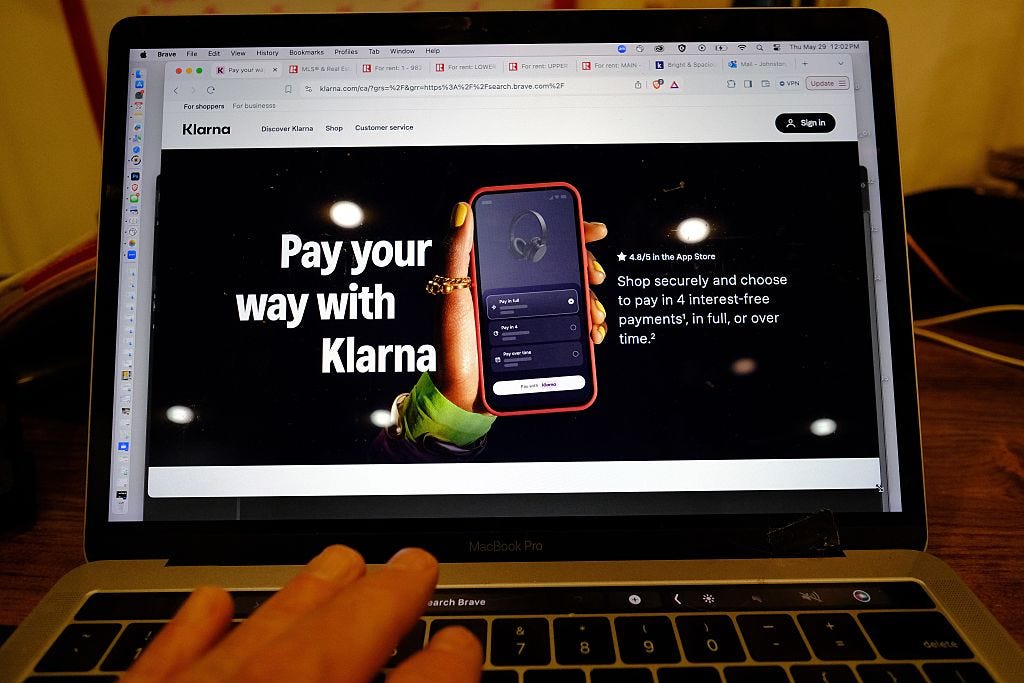 Those often come from companies like Affirm or Klarna that allow consumers to split the cost of a product into a number of payments, usually four. It’s technically a loan — the servicer pays for the product and you pay the servicer.