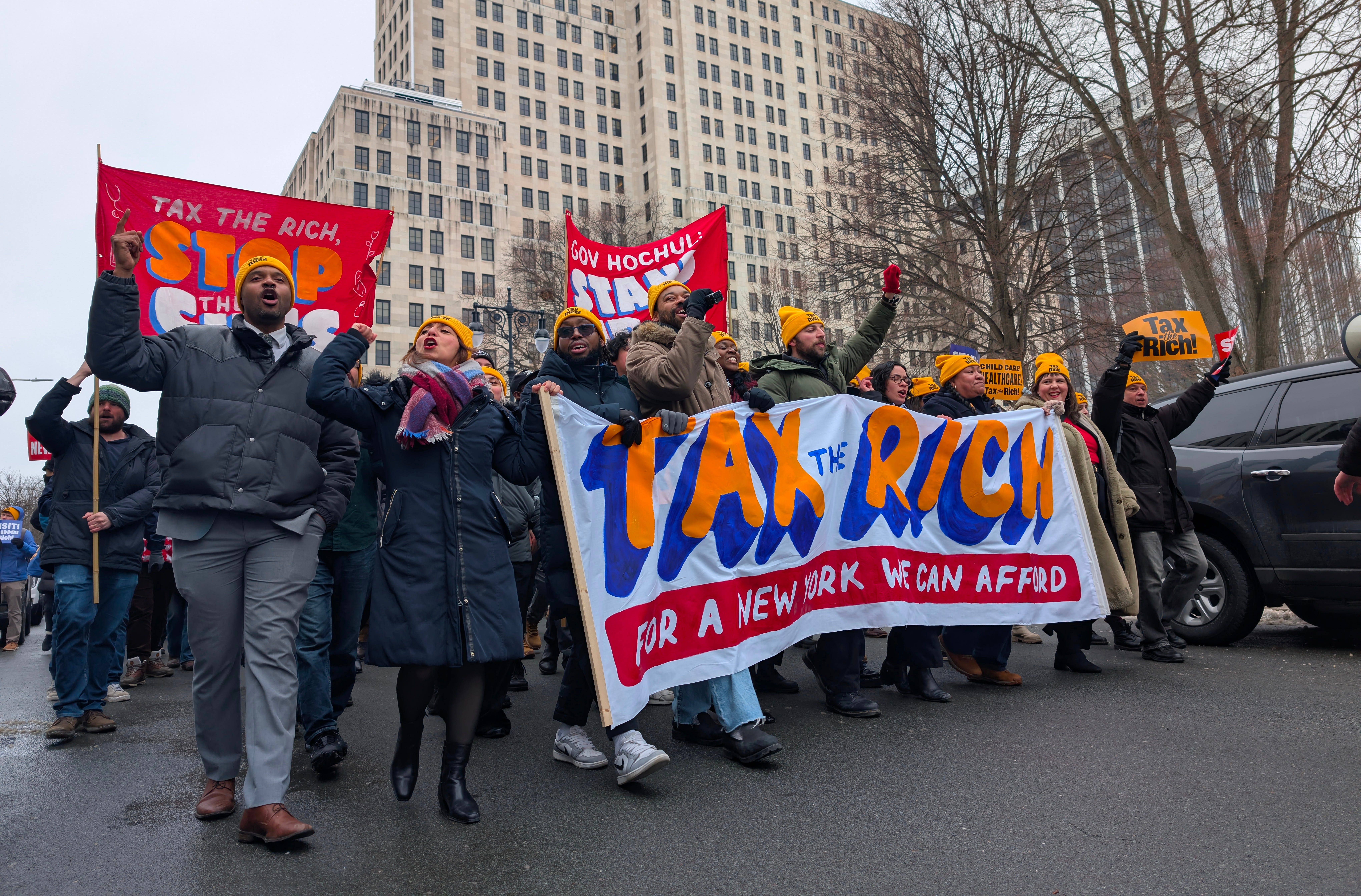 Supporters of those tax hikes descended on Albany Wednesday to pressure lawmakers to push harder for them in the state budget.